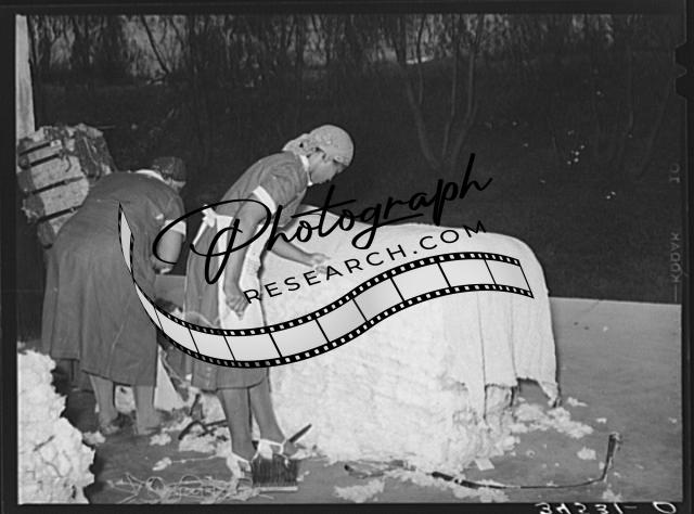 Title: Negro women cleaning up damaged bales of cotton. Compress, Houston, Texas