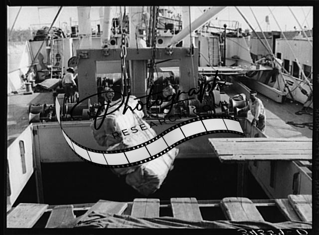 Title: Houston, Texas. Storing bales of cotton into hold of a freighter for export. Notice the different levels