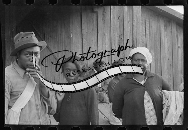 Other Title: Cotton pickers on the Alexander Plantation at 6:30 a.m., waiting for the workday to start