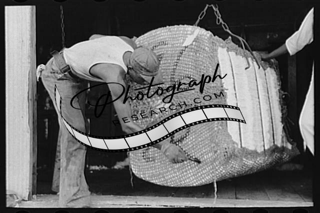 Title: Negro worker at cotton gin, Lehi, Arkansas