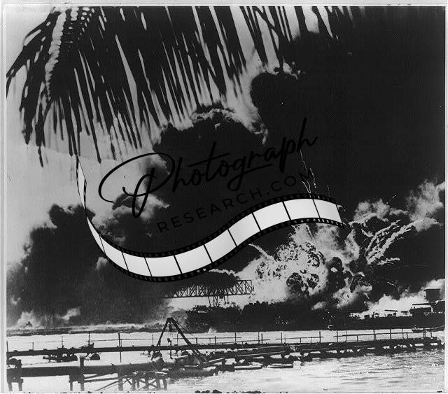 Pearl Harbor Naval Base,U.S.S. SHAW aflame,Japanese Attack,WWII,1941,World War