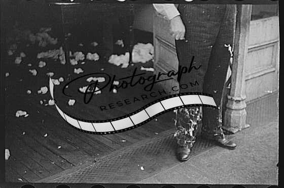 Title: Cotton on trousers of cotton broker in classing and sampling room in office of Cotton Row, Front Street, Memphis, Tennessee