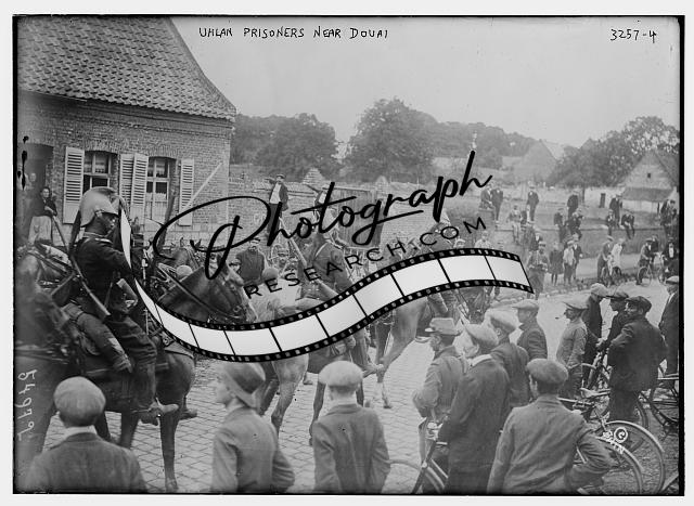German prisoners near Douai,France,men,horseback,bicycles,soldiers?