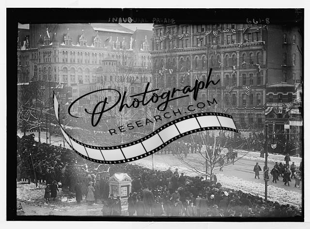 Inaugural parade on Pennsylvania Avenue,Washington,D.C.,crowd,horses,US flags