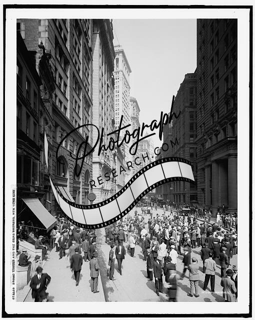 Broad Street,curb brokers,stock exchange,crowds,buildings,New York City,NY,c1910