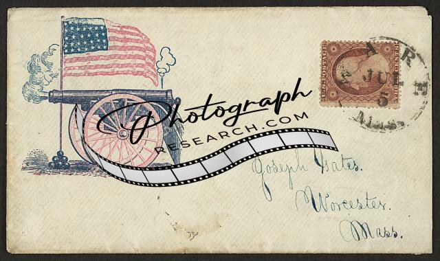 Photo of Civil War envelope,American flag,cannon balls,patriotic,1861