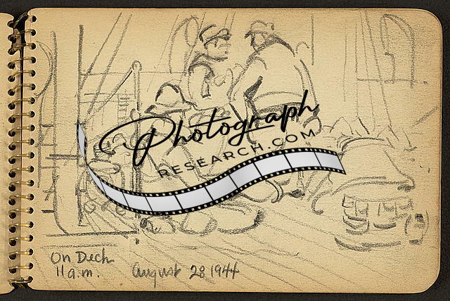 On deck 11 am,soldiers,ocean travel,ships,World War,Europe,Victor A Lundy,1944