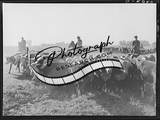 Title: Cowboy driving cattle to grazing land. Dawson County, Nebraska