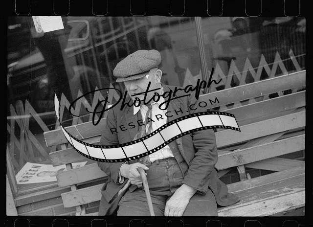 Unidentified Man seated on Bench with cane,Farm Security Administration,FSA,1