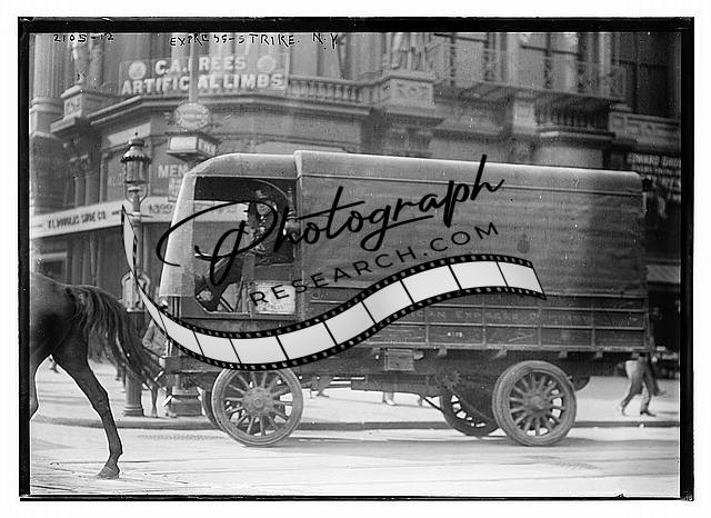 Express Strike New York,C.A. Rees Artificial Limbs,street lamp,horse,people