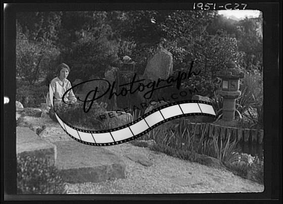 Unidentified woman,garden,stream,women,plants,AW Bahr,rocks,Arnold Genthe,1917
