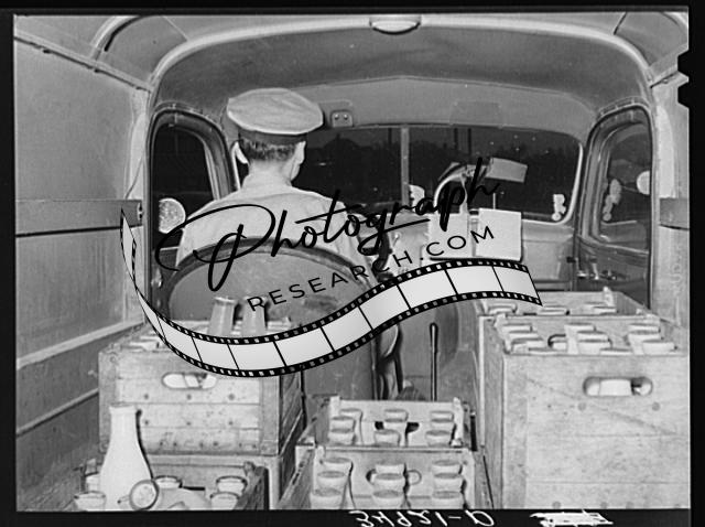 Title: Farmer unloading milk at creamery in the early morning. San Angelo, Texas