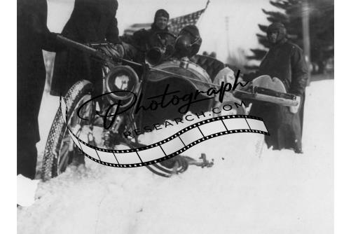 New York to Paris Automobile Race,car stuck in snow,1908?,winter,American flag