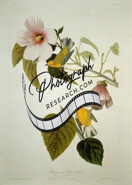 Blue-Winged Yellow Warbler,John J Audubon,Reproduction Photo,birds,flowers