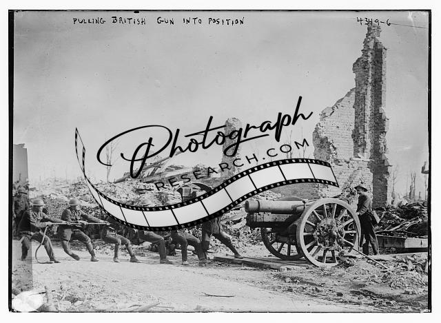 Pulling British gun into position,artillery,military,soldiers,Bain News Service