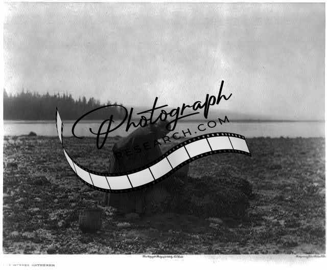 The mussel gatherer,Indian woman gathering mussels,shoreline,c1900,Edward Curtis