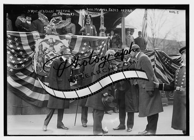 Mayor McClellan meeting Jose Manuel Reyes,New York,NY,Bugher,US Flags