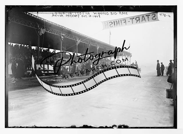 Auto Race,Motor Parkway,Lytle in Isotta winning at finish line,October 1908