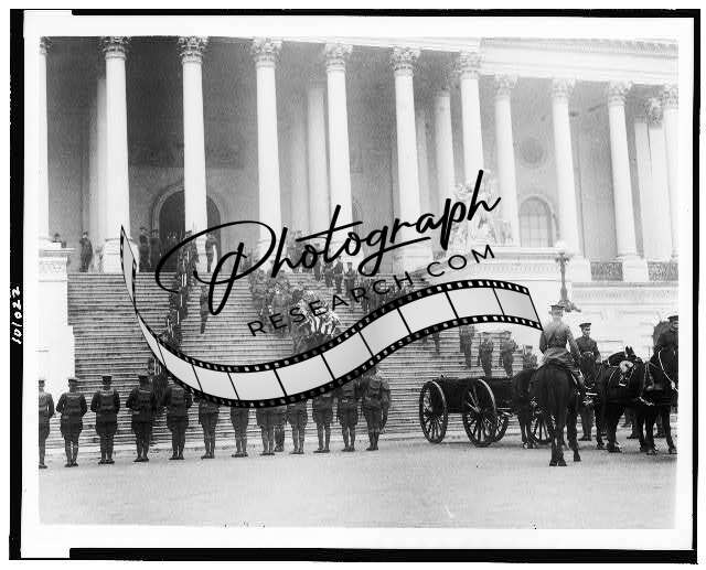 Coffin,Unknown Soldier,down steps,US Capitol,horse-drawn wagon,funerals,c1920