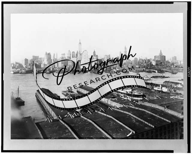 New York skyscrapers,lines,waterfronts,piers,wharves,buildings,boats,NY,c1930