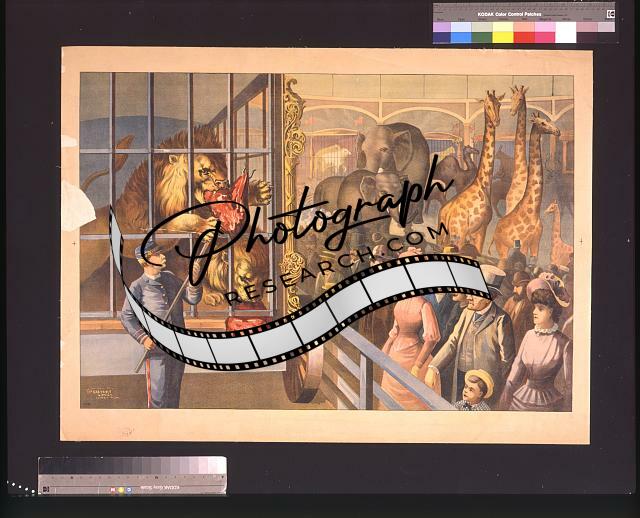 Animal keeper,feeding,lions,circus cage,posters,c1891