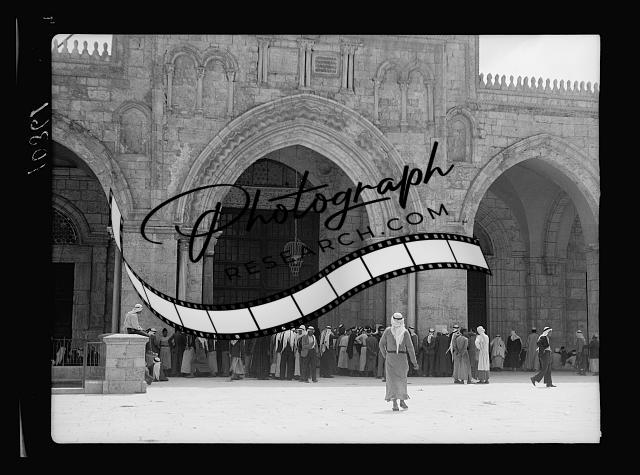 Title: Crowds in the Mosque el-Aksa [i.e., al-Aqsa], showing a victim