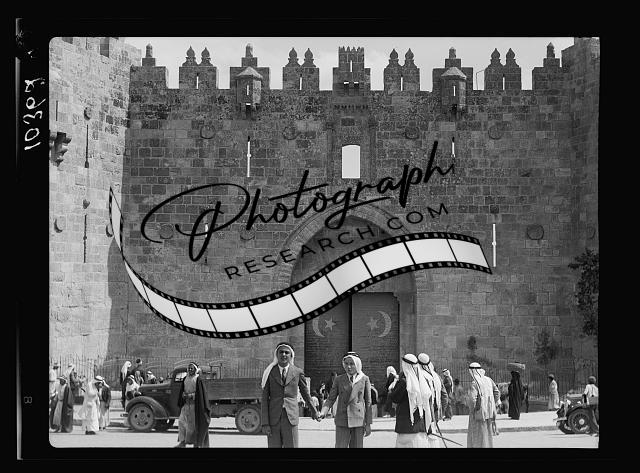 Damascus Gate showing few Arabs wearing kafiyas,Jerusalem,Israel,Middle East