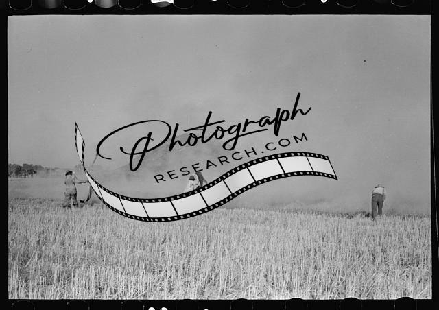 Title: Fighting fire of rice straw stack in rice field near Crowley, Louisiana. Position of fighters gave an idea of intense heat