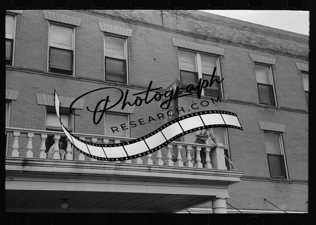 Title: Dusting sign of hotel, getting ready for rice festival, Crowley, Louisiana