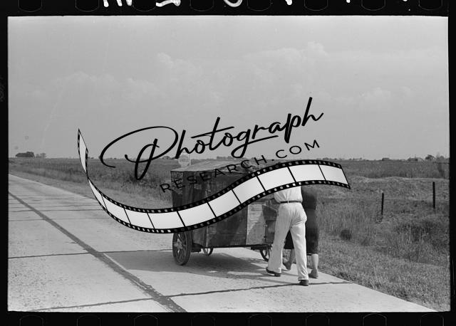 Traveling evangelists pushing cart on road between Lafayette,Scott,Louisiana