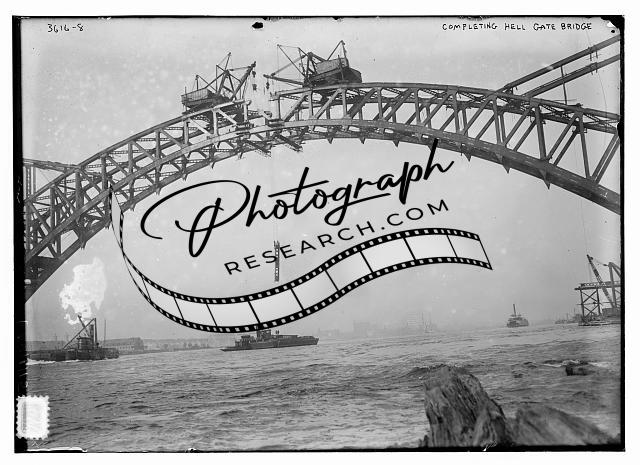 Completeing Hell Gate Bridge,ships,Queens,East River,New York,construction