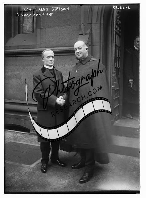Reverend Caleb Stetson,Bishop Manning,shaking hands,coats,religious leaders