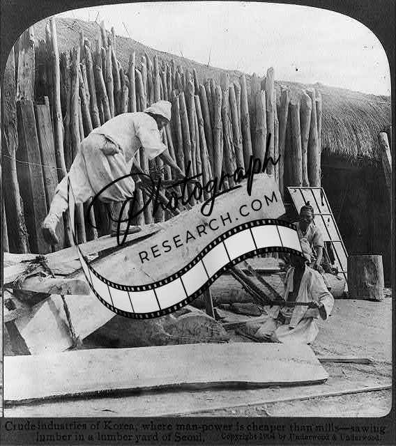 Crude industries of Korea,man power,sawing lumber,lumber yard,Seoul,c1904