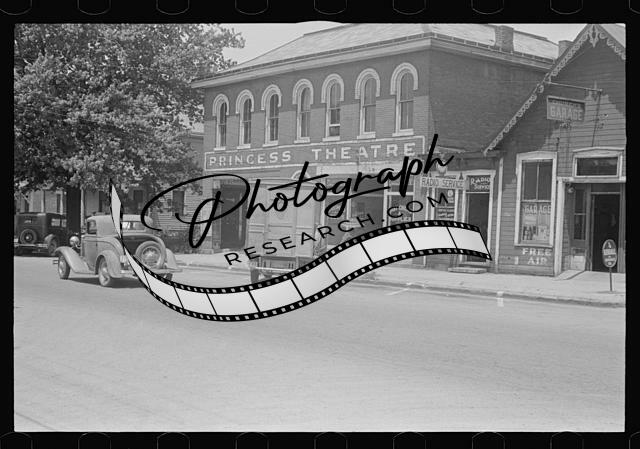 Street scene in Plain City,Ohio,OH,Princess Theatre,August 1938,FSA