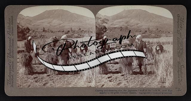 Cutting and sheaving rice, the Japanese "staff of life"--n. w. over Katsukake to
