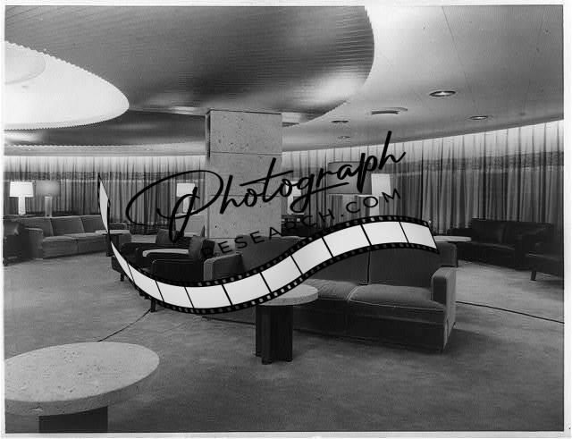 S.S. INDEPENDENCE,Observation Lounge,Ship,Couches,Sofas,c1950,Lamps,Curtains