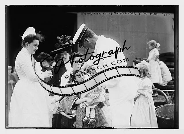 Hospital boat,a mother,her child,a doctor,upper deck,floating hospital,1910