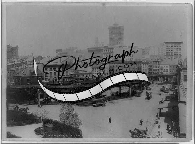 Elevated railroad,transportation,buildings,cities,New York,NY,A Loeffler,c1895