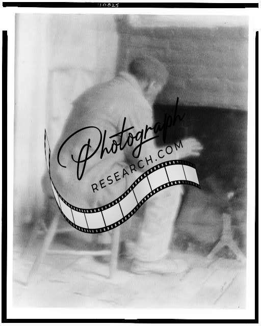 Man in old suit warming himself by fireplace,1905,Fred Holland Day,Domestic LIfe