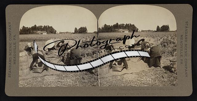 Cutting and sheaving rice, the Japanese "staff of life"--n. w. over Katsukake to