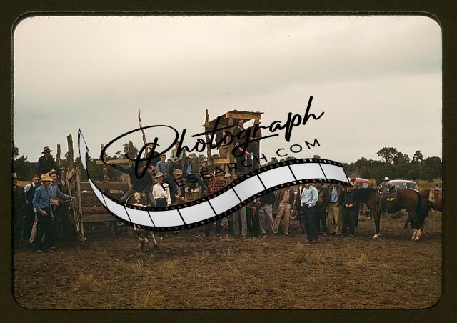Rodeo,bull riding,crowds,fences,Pie Town,New Mexico Fair,NM,Russell Lee,1940