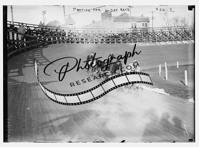 Cyclists pedalling on track in practice for 6-day race,December 1,1909,cycling