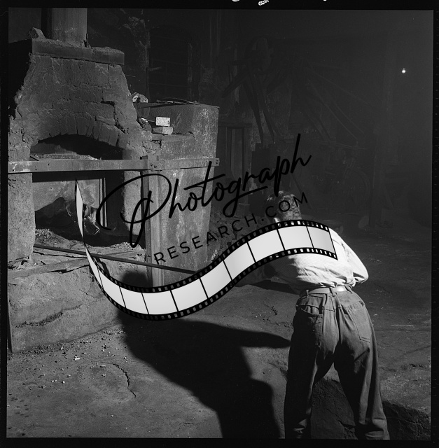 Summary: Photograph shows worker in foundry in the cymbal workshop of Zilciyan (Zildjiyan, Zildjian), outside the walls of Istanbul, Turkey.