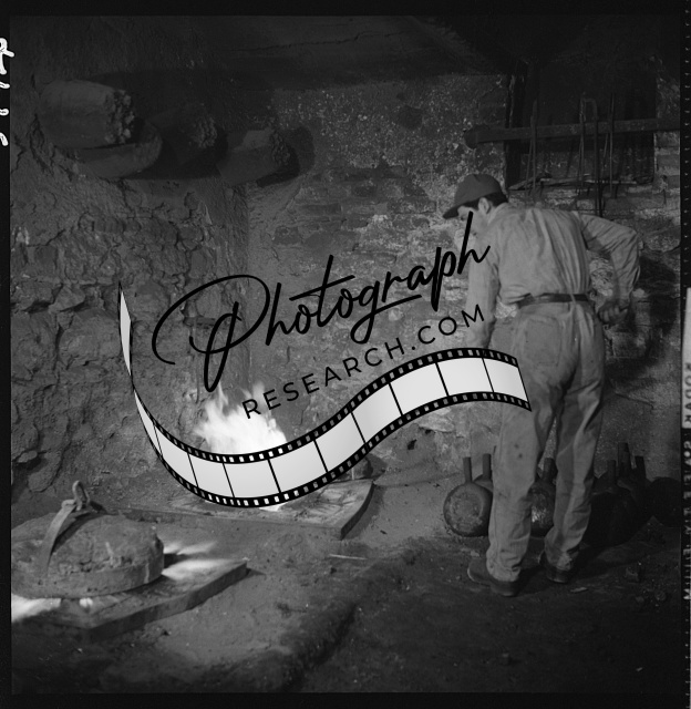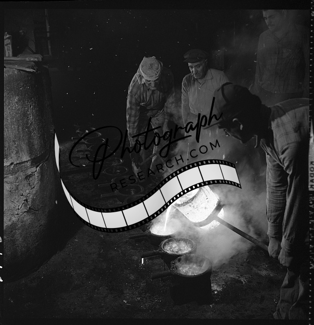 Summary: Photograph shows a worker pouring metal into molds at the foundry of the cymbal workshop of Zilciyan (Zildjiyan, Zildjian), outside the walls of Istanbul, Turkey.