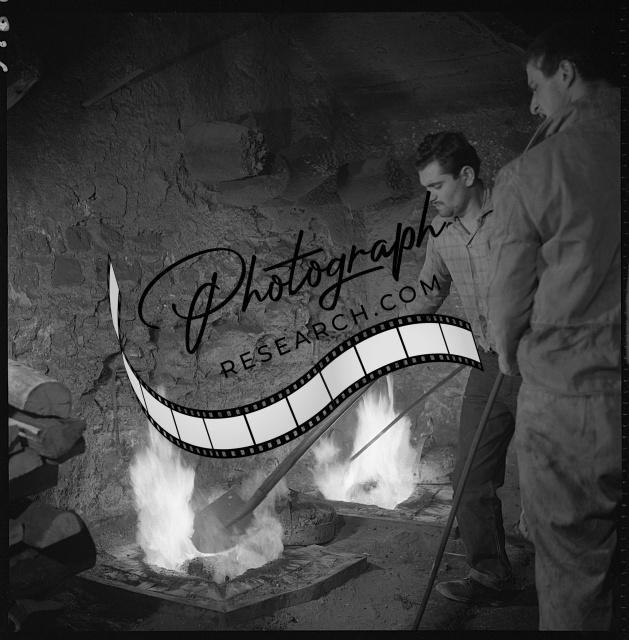 Summary: Photograph shows workers in the foundry of the cymbal workshop of Zilciyan (Zildjiyan, Zildjian), outside the walls of Istanbul, Turkey.