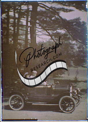 Couple,car parked under large pine trees,automobiles,portrait,Arnold Genthe,1906