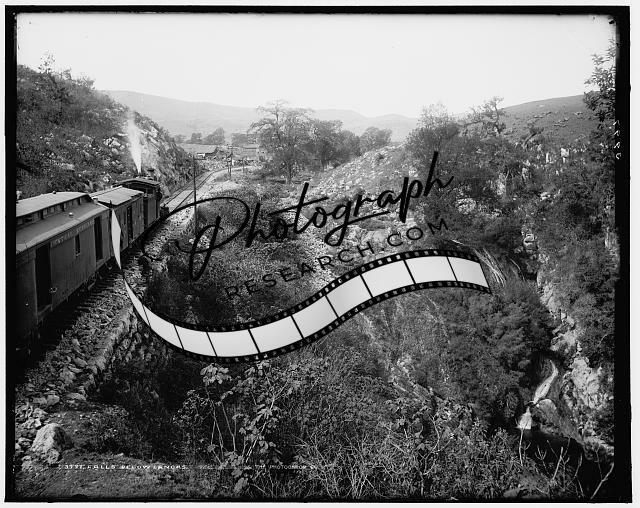 Waterfalls,Canoas,Mexico Central Railway,road,trains,tracks,rocks,Mexico,1880