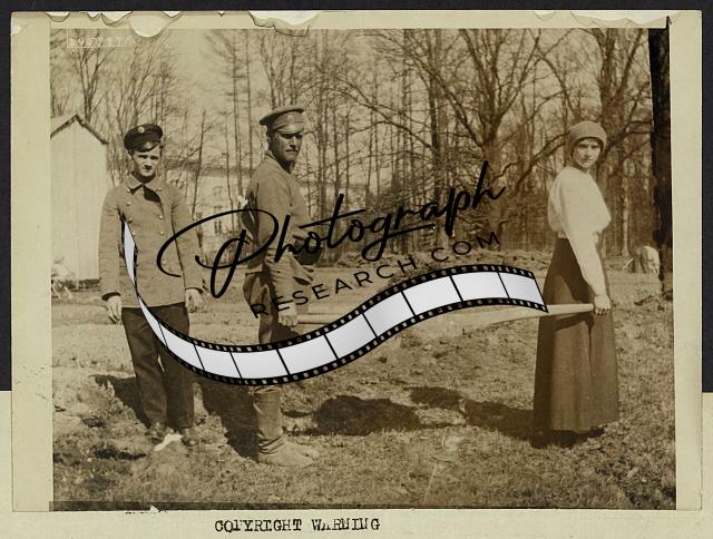 Summary: Photograph shows Czar Nicholas II and family gardening at Alexander Palace during internment at Tsarskoe-Selo, 1917.