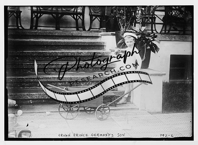 Son of Crown Prince of Germany,holding apple,next to wagon,child,steps