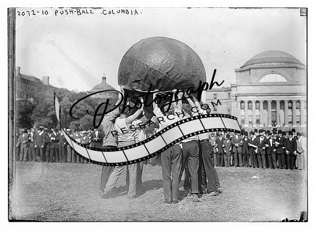 Push-ball,Columbia University,group of males holding large ball,spectators